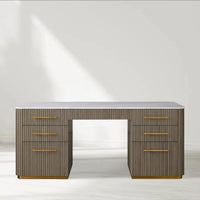"Love the texture and quality.This nightstand looks even better in person! The ribbed panels and gold handles are gorgeous.It feels heavy and well-made. "