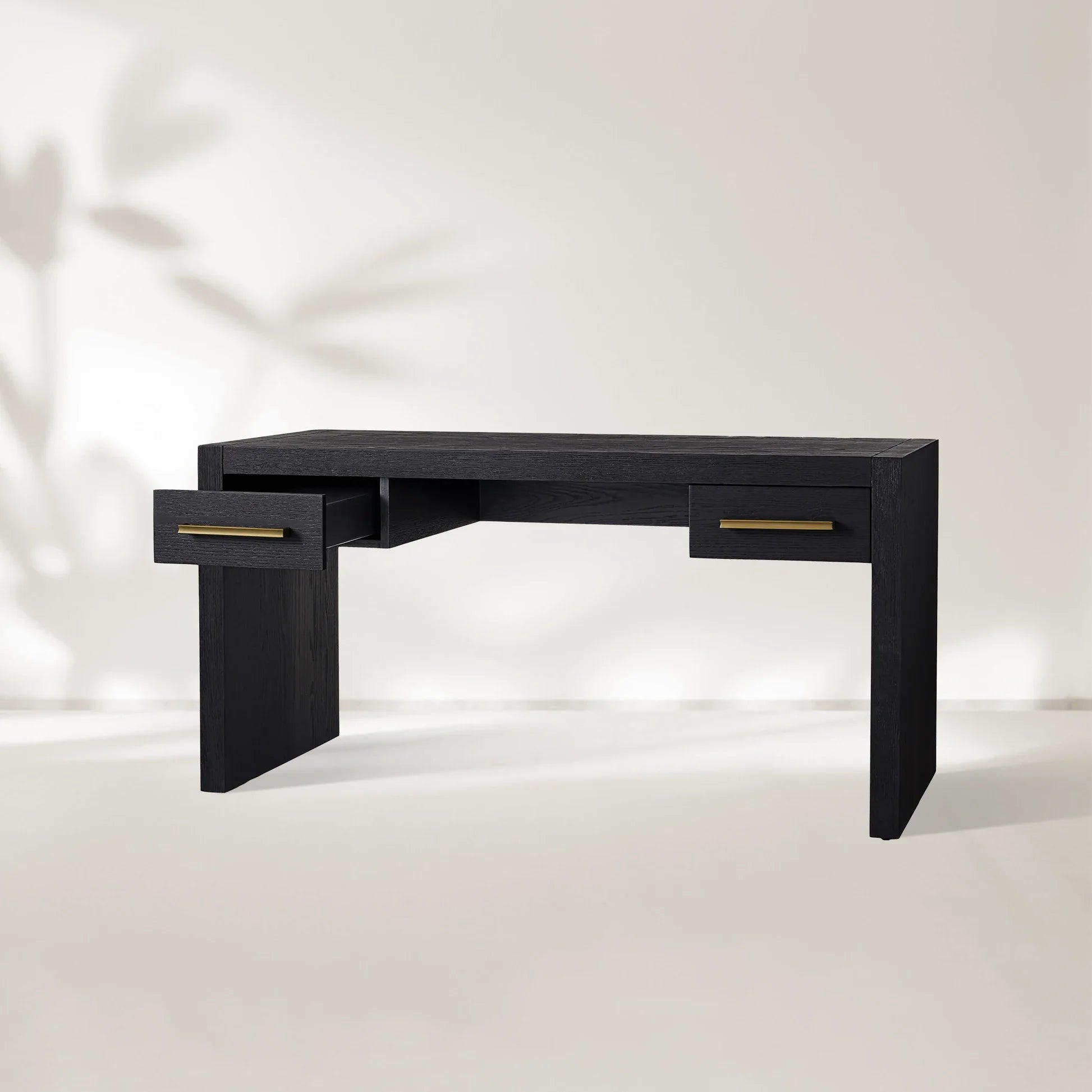 Bodhi Writing Desk Handcrafted From Solid White Oak With Brass Drawer Pulls