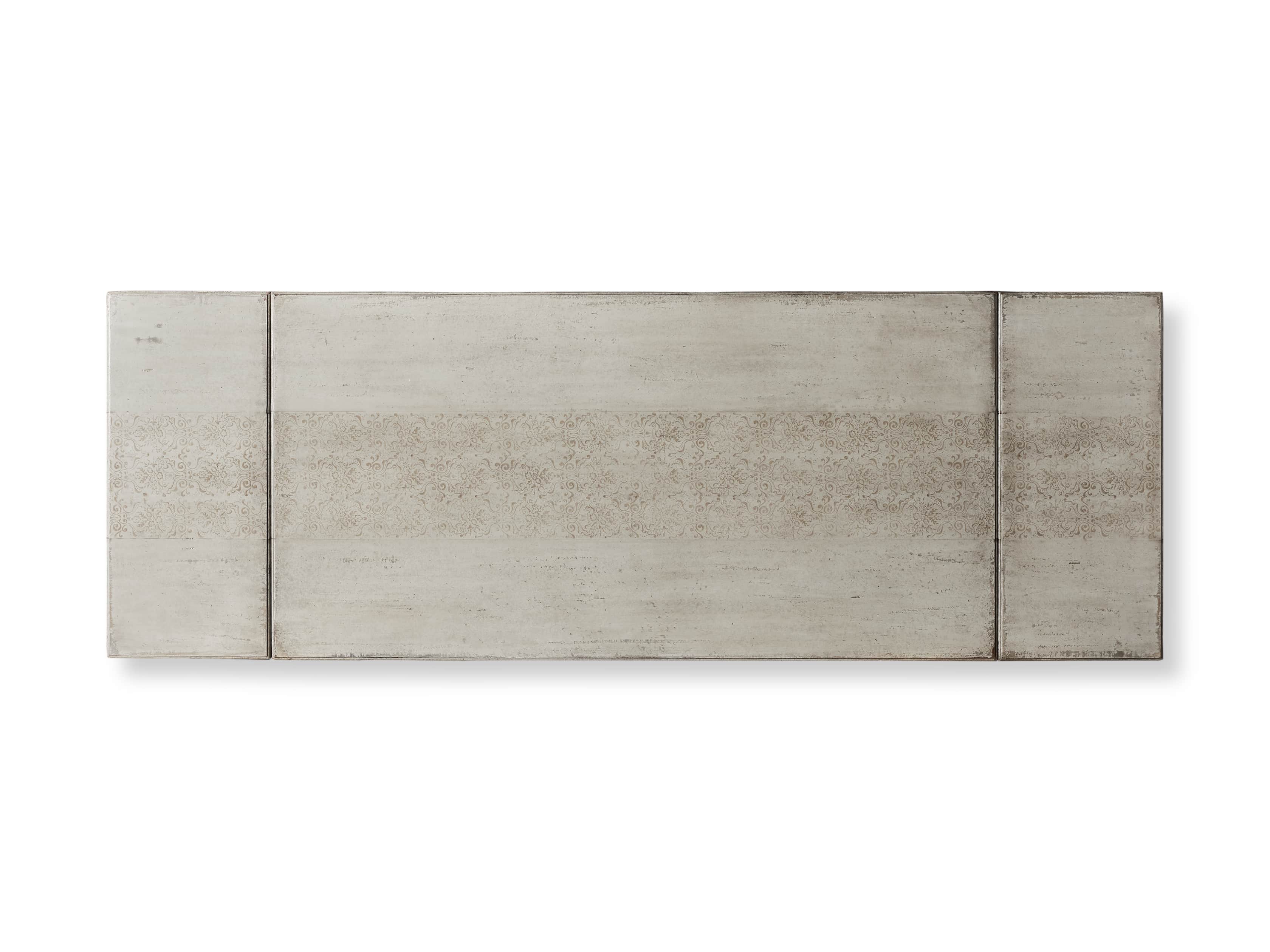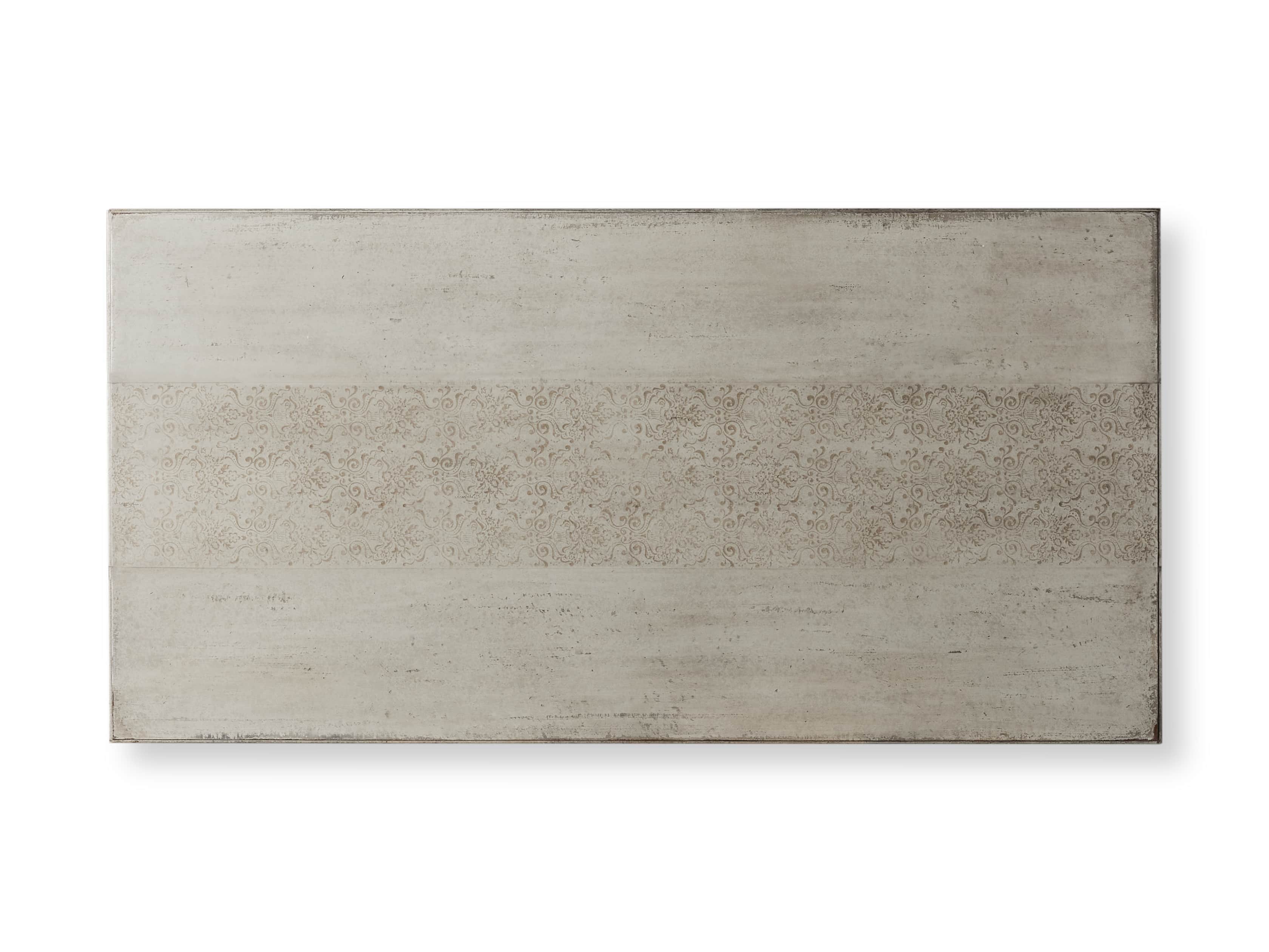 A hand-painted. intricate runner adds delicate detail to this tabletop. - Width 118"/ 94" / 86" / 78"