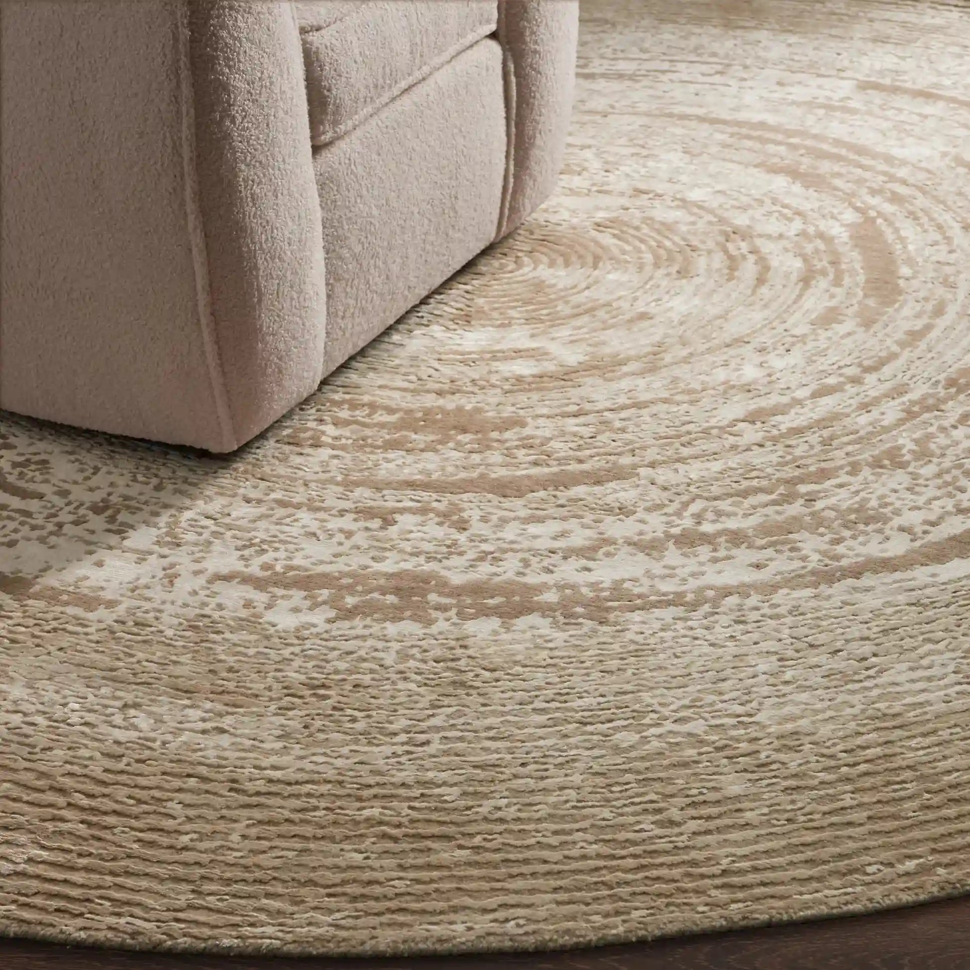 Elevate your home with the Lettae Hand-Knotted Round Rug, a sophisticated foundation for any room. Expertly woven using the Tibetan knotting technique, this rug showcases an abstract circular pattern that adds movement and texture to your space. The warm brown tones create an earthy, modern look that blends effortlessly with both contemporary and traditional interiors. Perfect for the living room, dining room, bedroom, or office, this handcrafted rug is designed to bring comfort and timeless style to busy households.