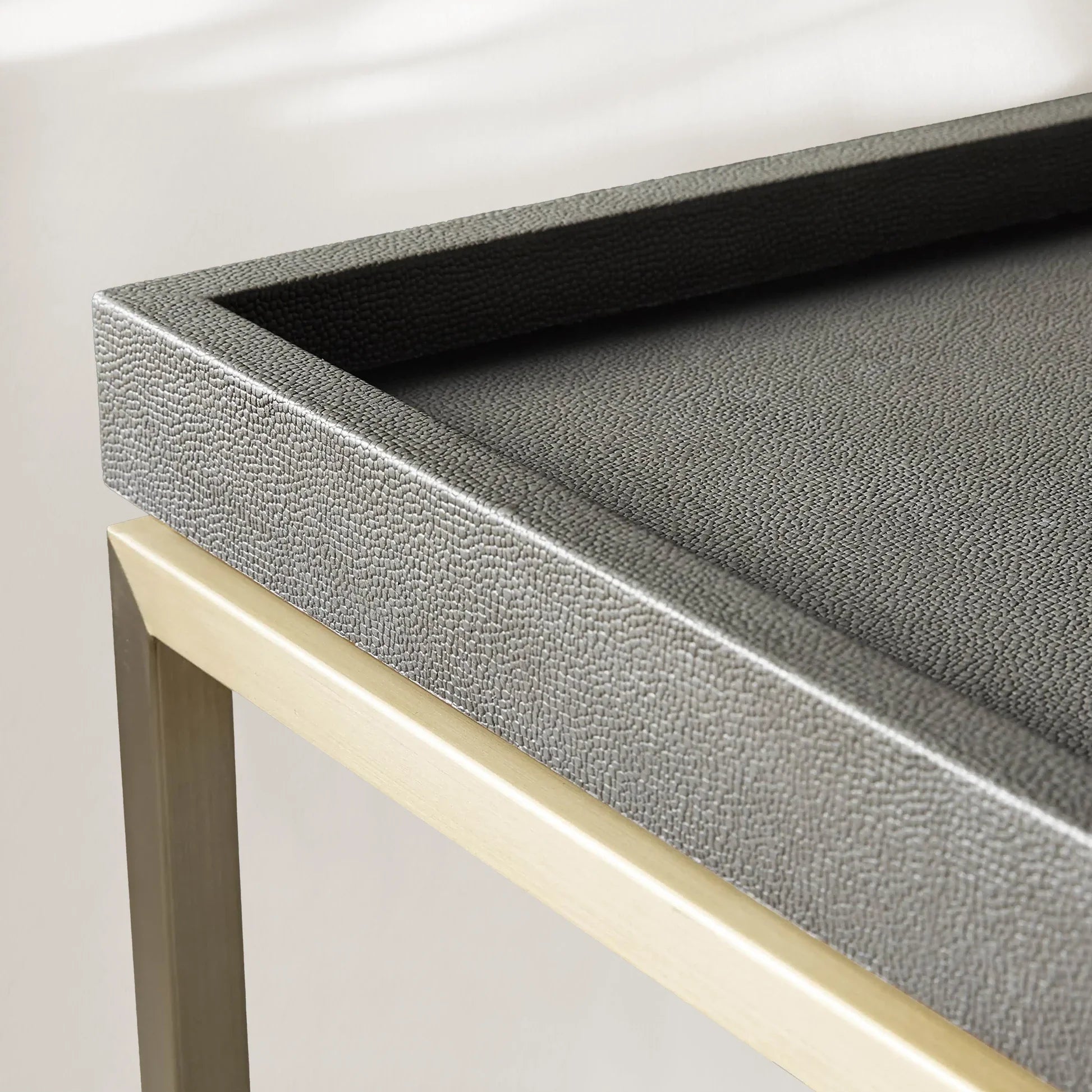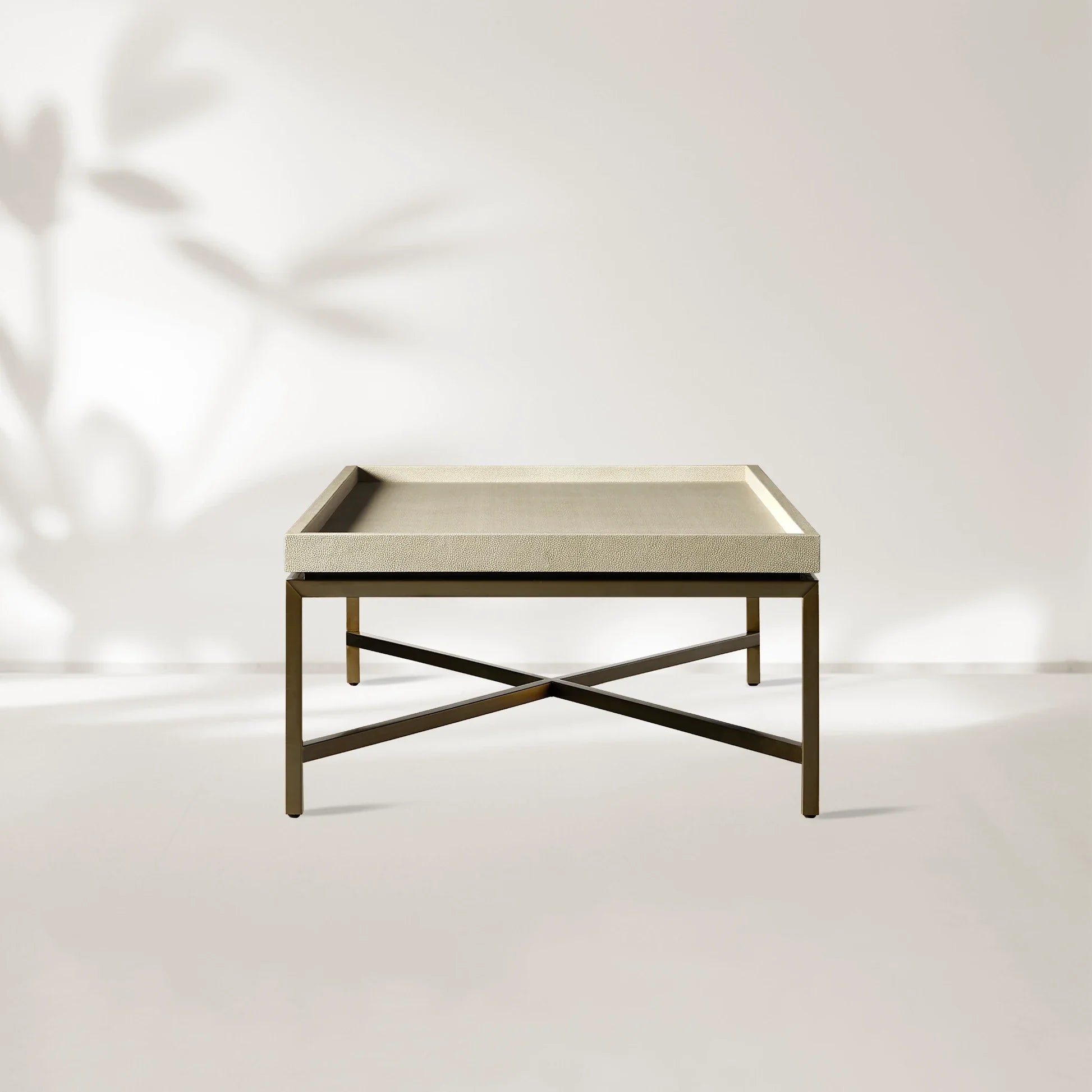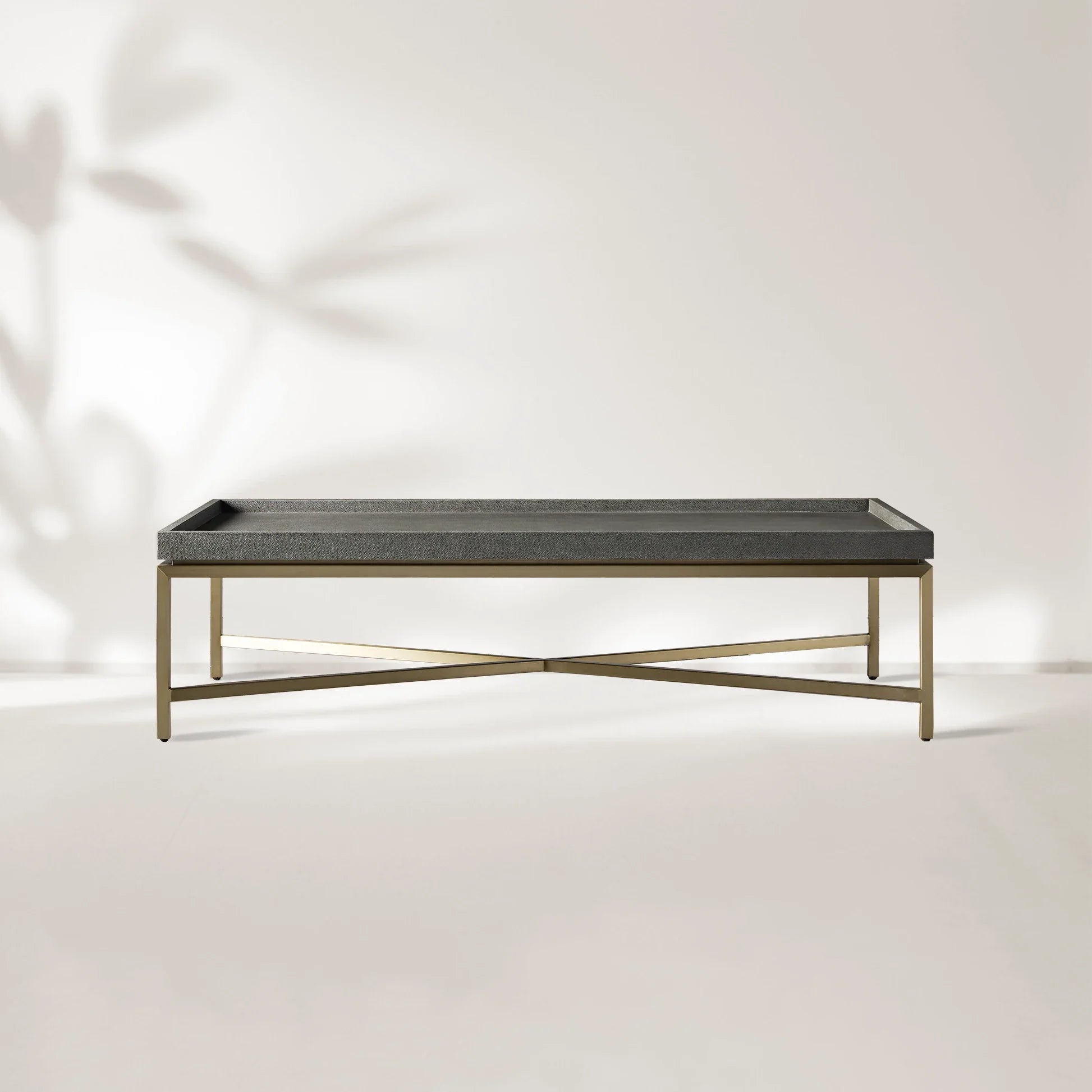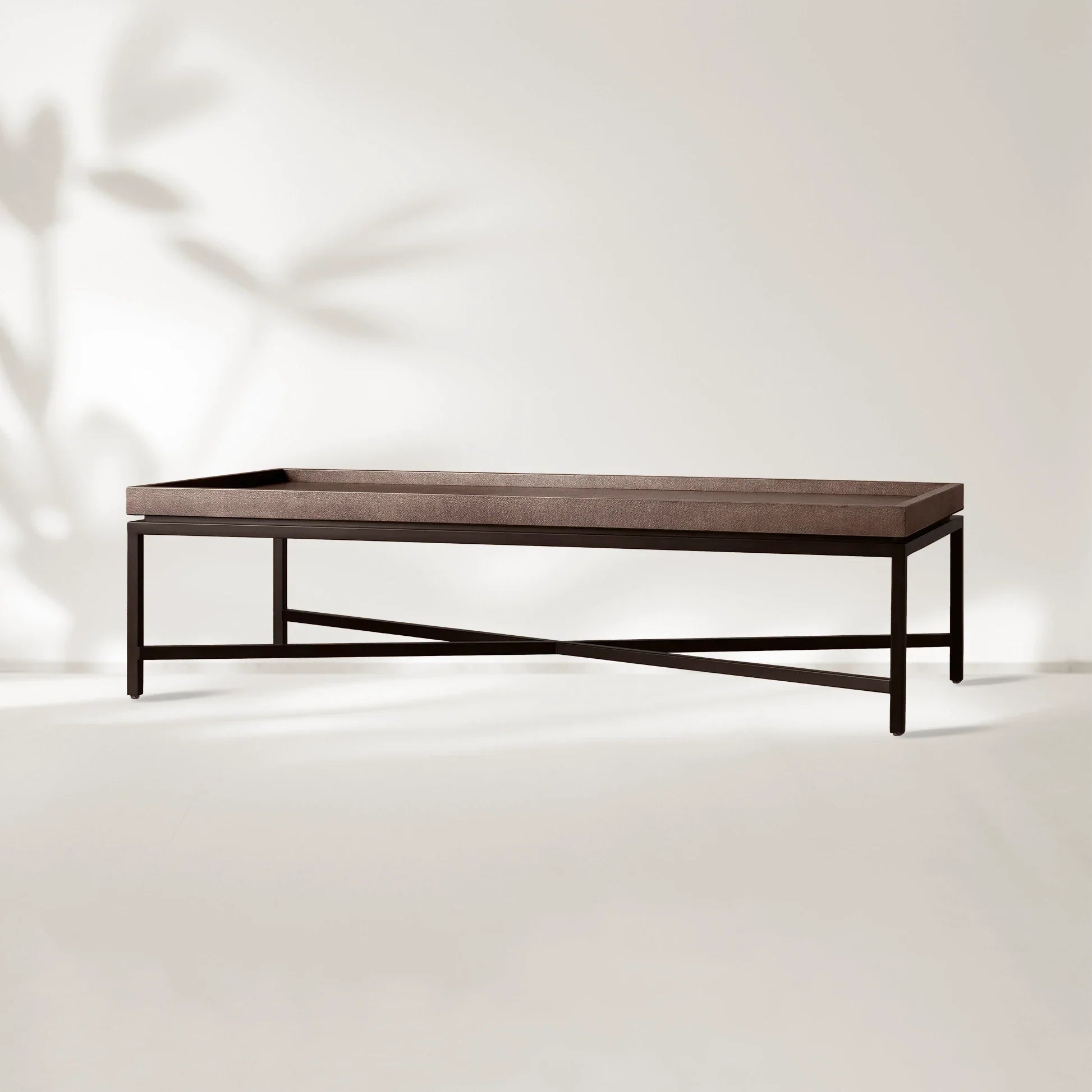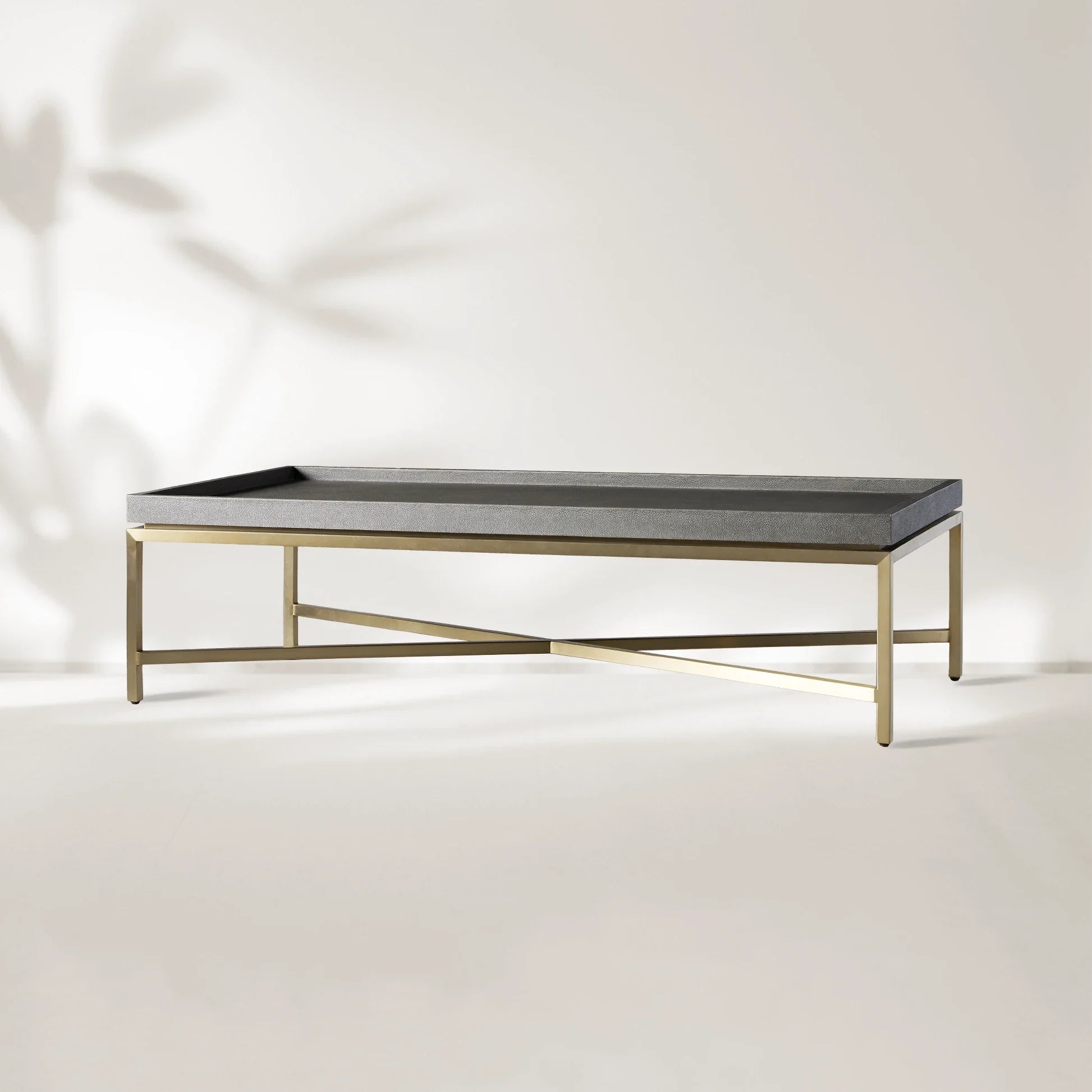 Malone Coffee Table Modern Steel Base With Embossed Leather Shagreen Top