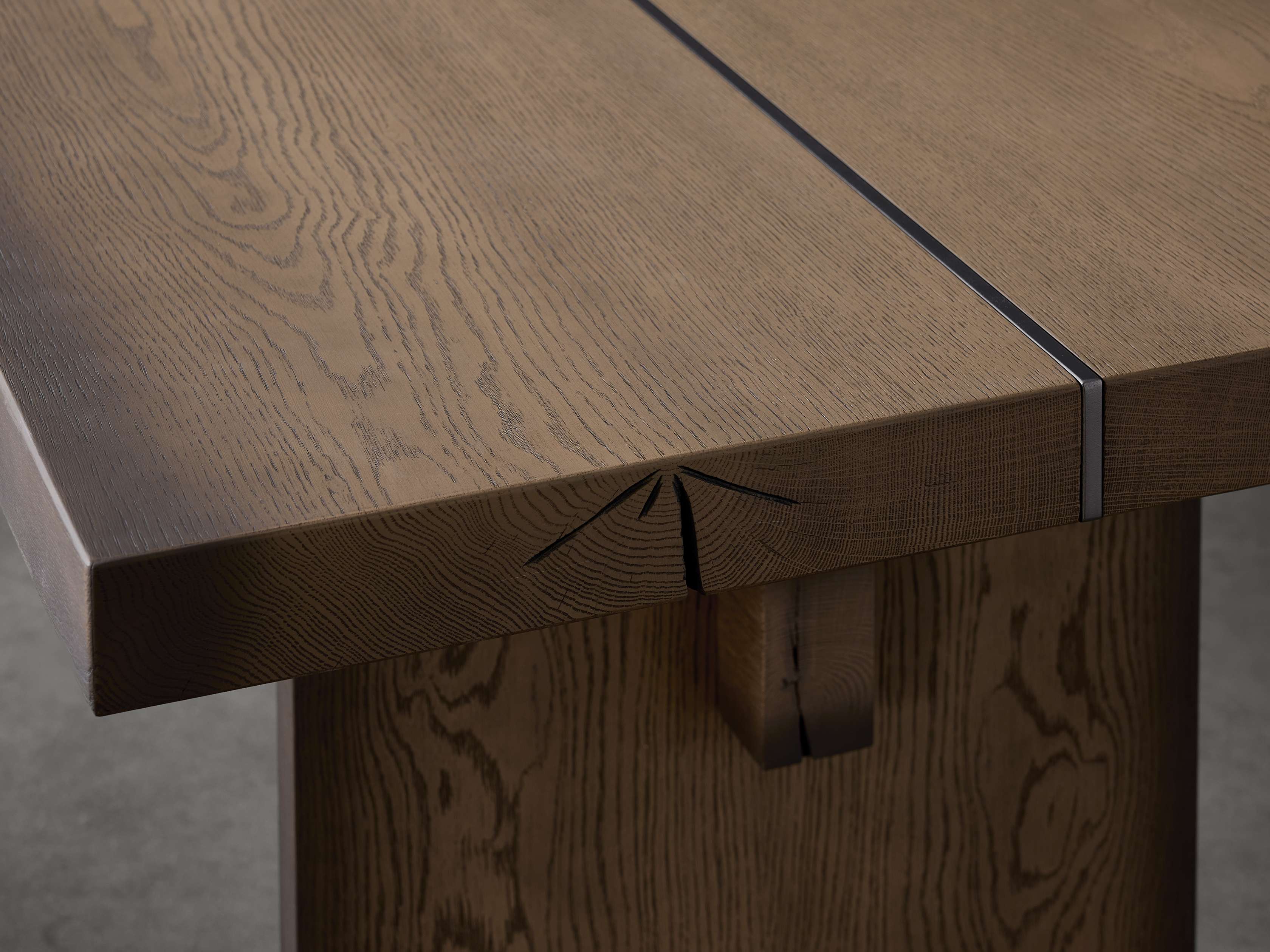 - Dining tabletops are made from alternating layers of Romanian oak wood and solid spruce wood to ensure the stability and longevity of every piece.